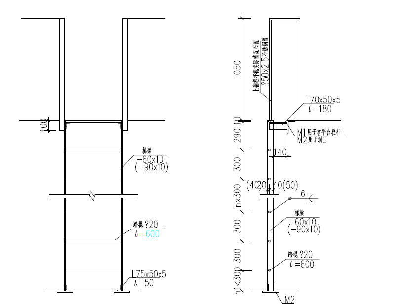 斜體間平臺@屋面檢修鋼梯@上段中段下..
